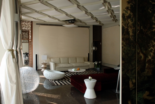 这个非常有创意的上海别墅融合了当代设计,中国古典家具和其他一些标志性的设计元素,极具大都会风格。设计师给室内设计了富有肌理感的表面。