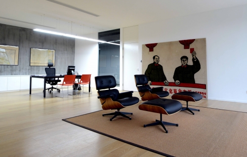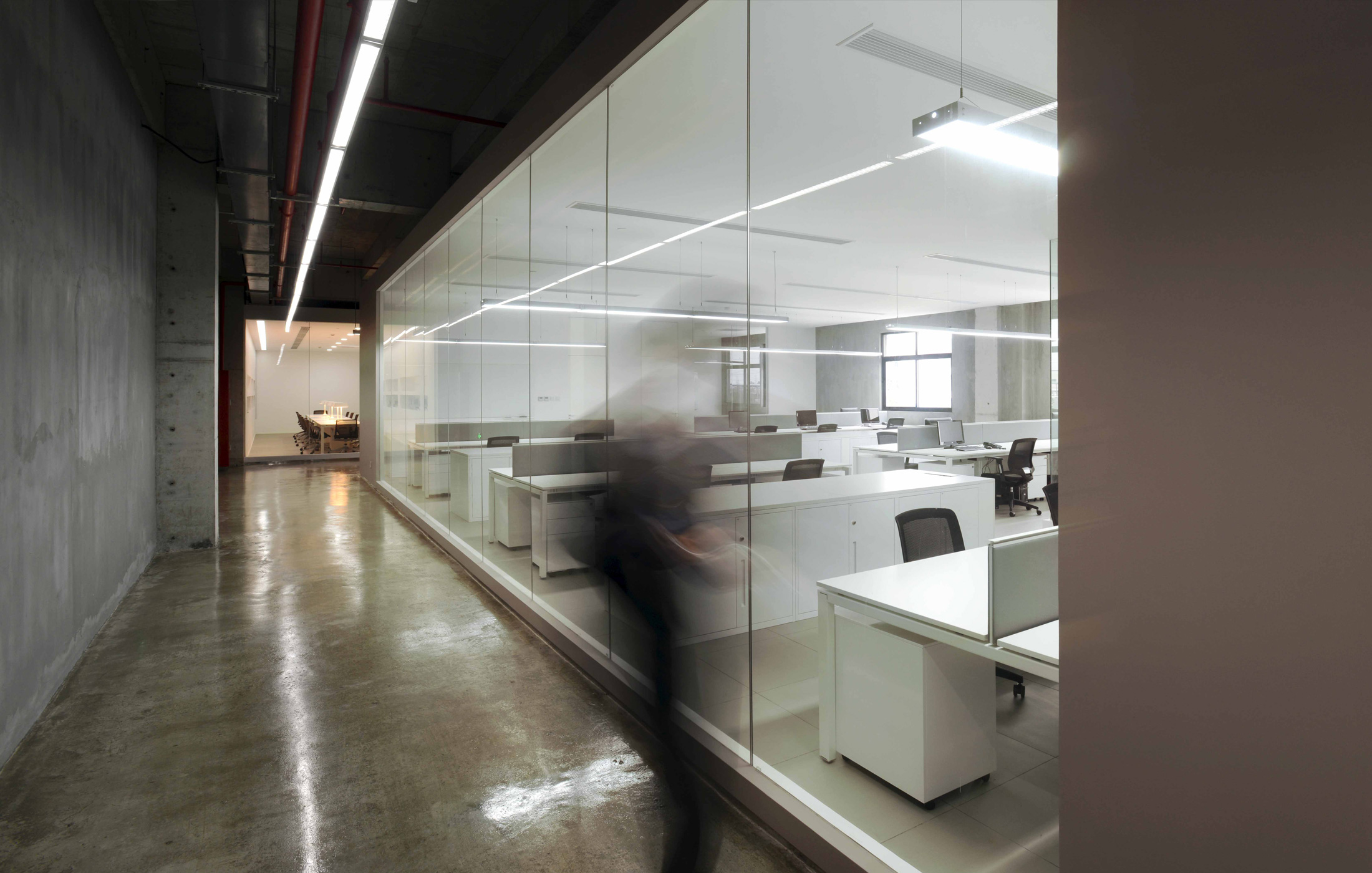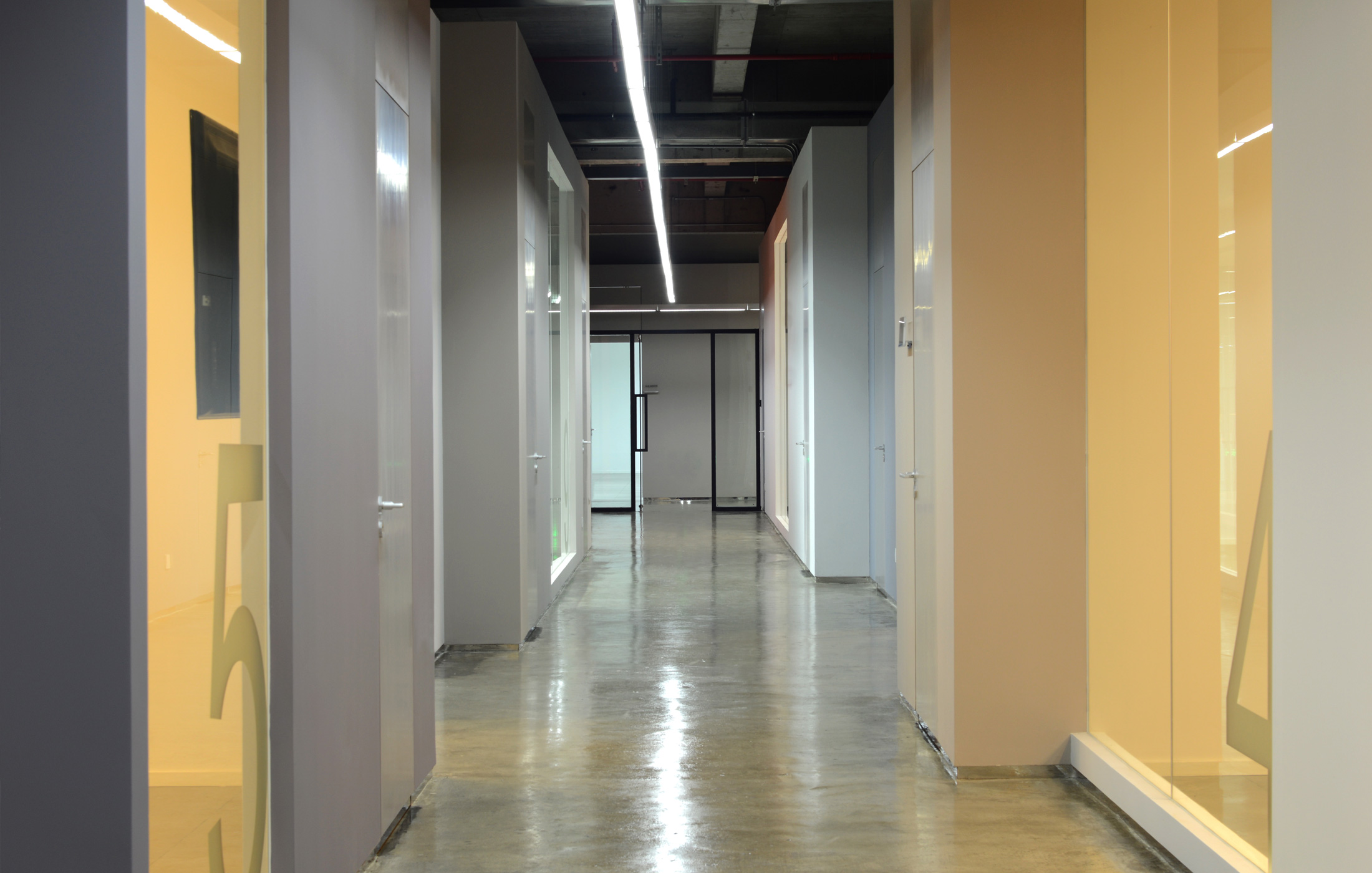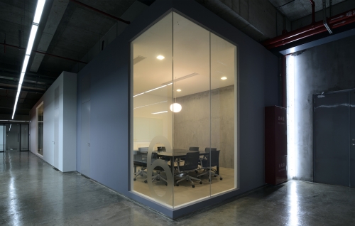 Interior design project to create an office space in which there is a conviviality between open and private space, thanks to the use of different materials.