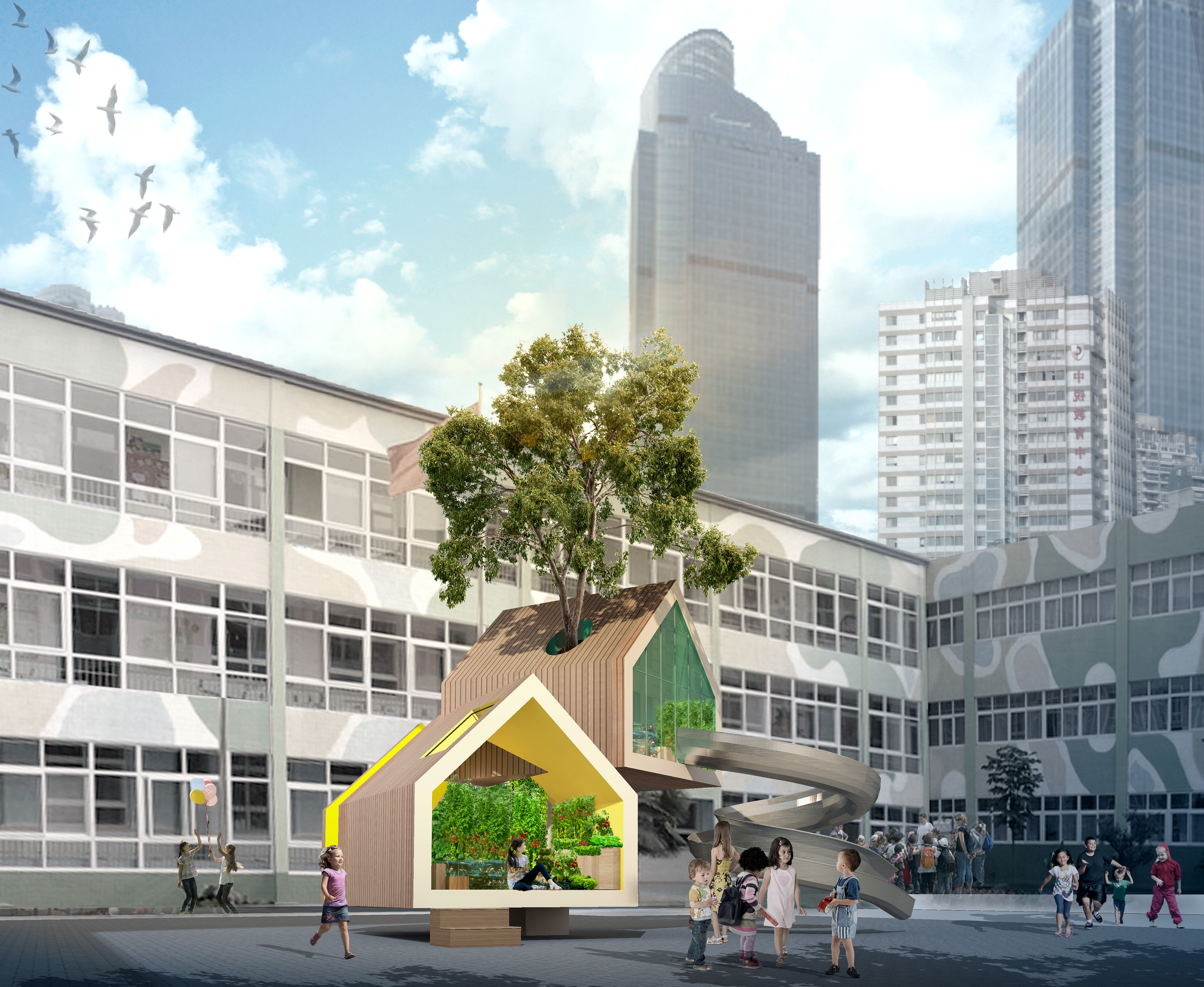 ‘Edible School’ an architectural reinterpretation of a “tree house” with educational programs for children, to be placed in primary schools and playgrounds;